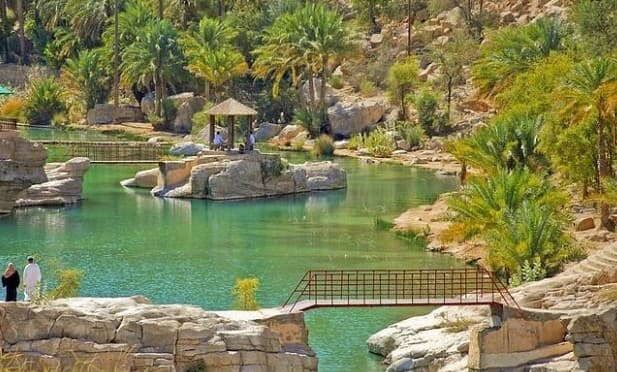 - Proceed to Wadi Shab, one of the most beautiful oases in Oman: narrow gorges, crystal-clear natural pools, palm trees, and gardens.