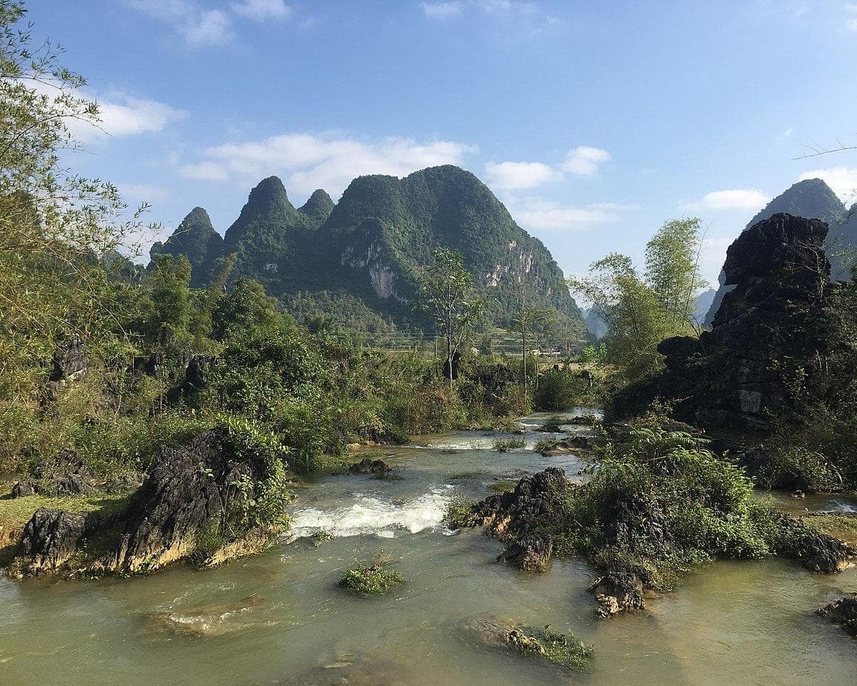 Croisière sur le lac Ba Be par bateau. Ce n'est pas par hasard que l'on appelle ce site " la baie d'Halong en montagne ": baie de 3 lacs à l'eau douce Pelam, Pelu et Peleng selon les habitants locaux, Ba Be a été classé parmi les 20 plus beaux du monde. Cette région possède de beaux paysages: chutes d'eau, rivières, vallées, lacs et cavernes.